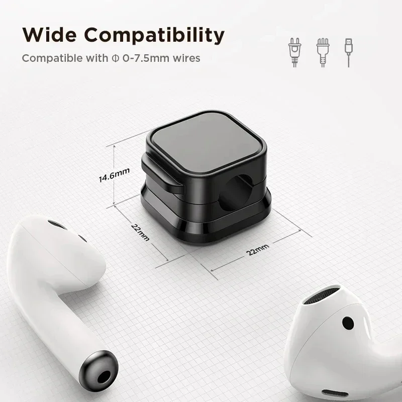 7.5mm Perfect Cable Slot Diameter – The 0.3-inch (7.5mm) slot is designed to hold most types of cables, including phone charging cables, USB cords, HDMI cables, and computer power cords. It can even secure slim cables like the original iPhone charging cable without slipping, while still allowing smooth removal.